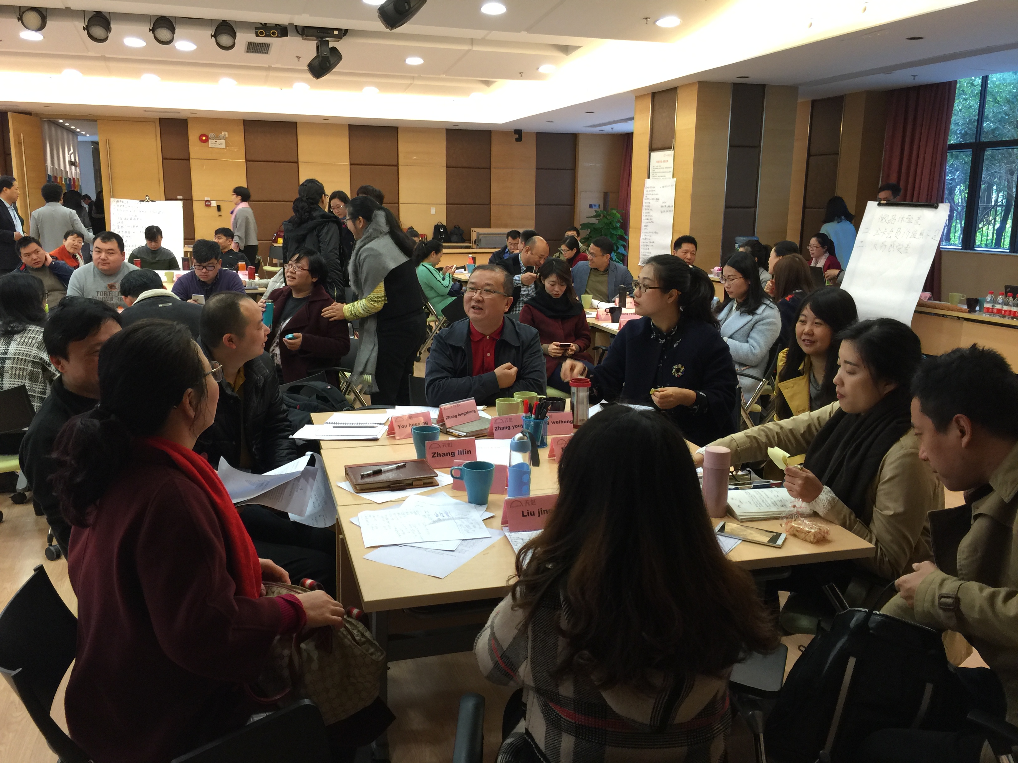 首先將全體學(xué)員跨工作職能、工作層級分組,每小組圍坐一桌,進(jìn)行實(shí)戰(zhàn)模擬及互動式實(shí)踐活動。通過熱烈的小組討論,把天虹商場當(dāng)前存在的實(shí)際問題一一列舉在白 板上,之后選取一個最迫切解決的,將其具體化,深入細(xì)致地剖析,找出可行的解決方案,并設(shè)立時(shí)間軸,計(jì)劃實(shí)施到天虹商場未來的實(shí)際運(yùn)營中。運(yùn)用 Jay Rao教授講的在一兩家分店先進(jìn)行試驗(yàn),試錯,總結(jié)經(jīng)驗(yàn),再試,直到總結(jié)出適合天虹自身發(fā)展的一套模式,再大規(guī)模地運(yùn)用到各個天虹商場。相信培訓(xùn) 課程會給天虹的有機(jī)發(fā)展帶來顯著的成效。